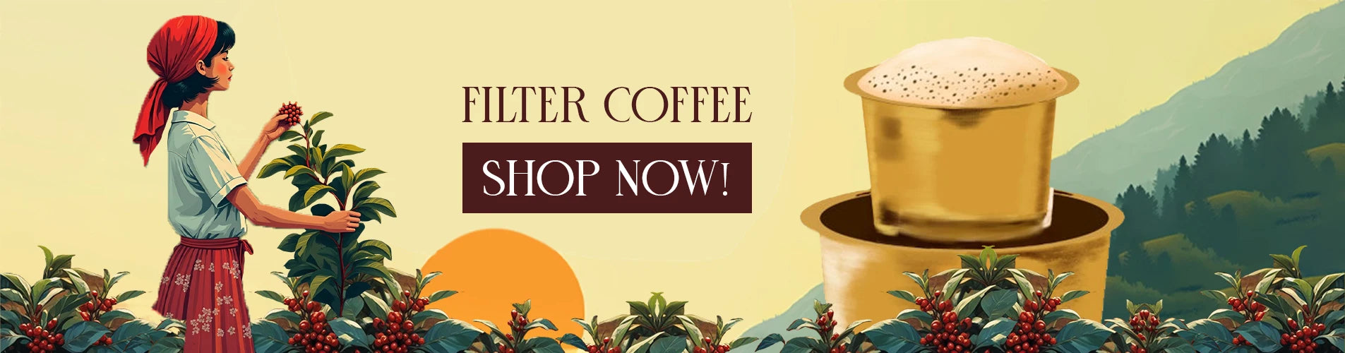 <p><span>Discover the essence of tradition with our House Blend Filter Coffee, sourced from the legendary Baba Budangiri Hills in India. This region, known as the birthplace of Indian coffee, produces beans renowned for their distinct flavor and heritage. Our expertly curated blend captures the spirit of these hills, combining bold, full-bodied notes of dark chocolate and caramel with a subtle hint of spice. Perfectly balanced with a smooth finish, this coffee is an homage to its rich legacy, offering a classic yet vibrant cup that embodies the true soul of Indian coffee culture.</span></p> <p><strong>Brew with , Moka Pot / South Indian Filter / Coffee Maker (With Chicory Blend)</strong></p>Discover the essence of tradition with our House Blend Filter Coffee...