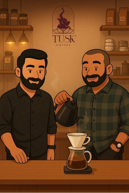 A venture by SGMI Enterprises Pvt. Ltd., Tusk Coffee was born from a vision to bridge the gap between India’s growing coffee culture and the limited awareness around coffee origins. As more people embrace coffee, it’s important they also appreciate what they’re drinking and where it comes from. To deliver authentic knowledge and experience, we partner with renowned estates in Coorg and Chikmagalur, where coffee has been grown ethically for over 60 years. Our Director's personally visit these farms each season to handpick only the finest beans, ensuring exceptional quality from crop to cup.